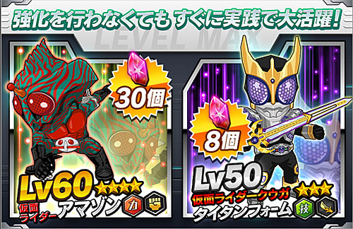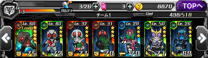 【スマホ】仮面ライダー バトルラッシュ 世間が「ポケモンGO」で賑わってる中、さり気なく配信スタートした、仮面ライダーの新作アプリゲーム「仮面ライダー バトルラッシュ」。仮面ライダーのアプリには以前から興味があったんですが、種類が多くてどれが一番面白いのかサッパリ・・・そんな時に新作が出たという事で、こちらをプレイしてみることにしました。デフォルメされたライダー達が活躍するRPGなのですが、そのライダー達がとってもラブリーです。 プレイヤーは、「ライダーフォース」というライダー支援組織に入り、専用デバイスで昭和から平成までの歴代ライダーたちを召喚して戦います。初期パーティは、新1号、ディケイド、ナイト、アクセル、メイジ。この内、レアリティ☆3つ以上のライダーが必殺技を使えます。 最初のガチャで・・・Xが出ました!(嬉☆3つですが(最高☆5)昭和ライダーが好きなので、このまま進めます。 あとリリース記念で劇場版の1号が貰えたので、これも加えます。 さらに、アマゾンとクウガのレベルMAXがショップで売られているので、ストーリーを進めながら石を貯めて、ガチャを回さずにコチラを購入。大好きなアマゾンが、アッサリ手に入って嬉し過ぎるw そんなこんなで現在のメインパーティは、こんな感じになりました。昭和ライダー3名+劇場版1号と、序盤から私好みのパーティになりました。 ストーリーは、ライダー支援組織・ライダーフォースが黒幕Qを追いかけて、各ライダーの世界を時間を超えて旅をしていくといった内容なので、平成ライダー知らなくても、それなりに楽しめてます。イメージとしては「仮面ライダー ディケイド」っぽい感じか。ディケイドまだ観てないけど(爆 最新のゴーストの世界から始まって、今、電王の世界が終わったところです。アポロガイストが出て来た時は、次はXの世界か!?と思ったんだけど、序盤は平成ライダーの世界が殆どの様です。でも、これはこれで、平成ライダーにも興味が湧くので楽しい。 んで、どんどん進めたいところなんですが、電王の世界でちょっと戦闘がキツくなって来たので、暫くは強化に専念かな。フレンドガチャで出て来る☆1や☆2のライダーを餌にすることによって、必殺技のレベルを上げることが出来ます。 まだ始めたばかりで、なかなか上手く進められない部分もありますが、ライダーを召還したときに変身音が流れたり、仮面ライダーGIRLSの曲が流れたりと、結構良く出来ていて、何よりデフォルメされたライダーたちがとってもラブリーなので、暫くの間は続けてみようかなと、思います。やっぱ、引きこもりに優しいゲームの方が向いてるみたい(爆仮面ライダー1号 コレクターズパック(初回仕様デジタルコピー付) [Blu-ray]posted with amazlet at 16.07.30TOEI COMPANY,LTD.(TOE)(D) (2016-08-03)売り上げランキング: 194Amazon.co.jpで詳細を見る [0回]